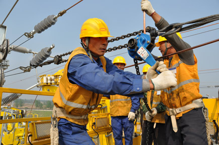 高壓線纜在各個地方架設(shè)都是很頻繁的,在架線的時候,我們是事先將線纜放在大致位置上,然后根據(jù)需要對中間距離的大小進行調(diào)節(jié)。不過在高空對線纜進行移動的時候,是非常困難的,還好我們有鏈條手扳葫蘆的幫忙,我們可以利用工具將線纜的兩頭固定在手扳葫蘆的兩個吊鉤上,然后根據(jù)工作方向,輕松的扳動手柄,就能實現(xiàn)線纜緩慢穩(wěn)定的移動。我們需要注意的是在使用手扳葫蘆牽引線纜的時候,一定要仔細檢查線纜是否連接牢固,防止牽引過程中出現(xiàn)斷開,影響工作的安全。